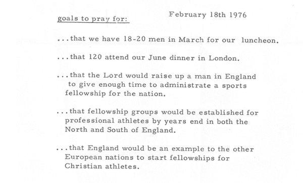 As the sporting sector steadily expands, God continues to invite Christians to offer their sporting gifts and opportunities for His glory - and to follow in the footsteps of those pioneering Christian sportsmen and women in 1976. Their prayer memo remains a valuable reminder of God's faithfulness and life-changing work throughout sport.